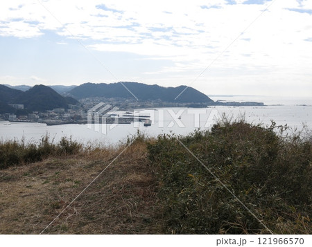 逗子市の大崎公園からの眺め(葉山港・森戸海岸・森戸大明神)