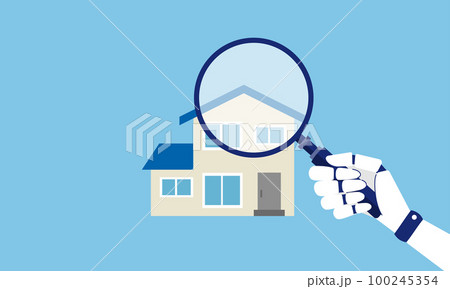 虫眼鏡と家のイラスト