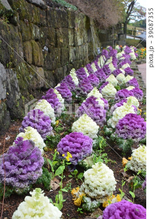 花壇の葉ボタンのきれいな風景