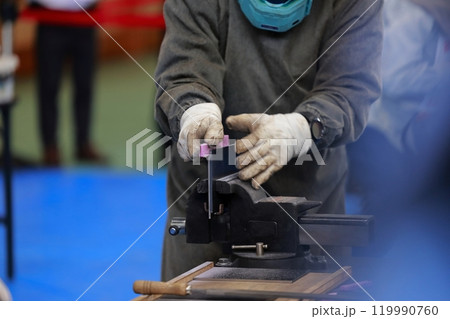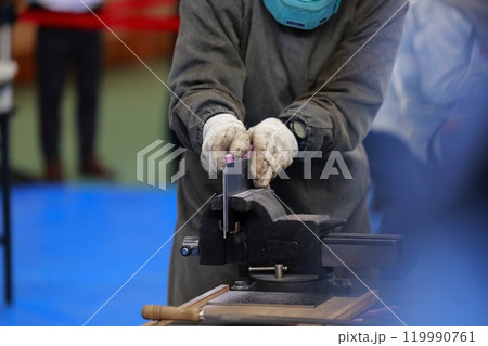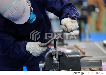 鑢掛けをする技能実習生 やすり バリ取り