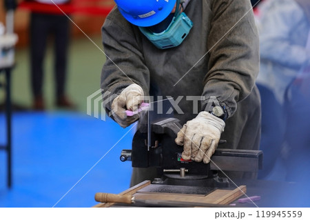 鑢掛けをする職人 やすり バリ取り
