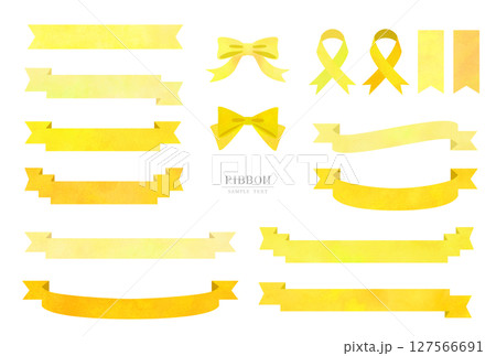 黄色いリボンのイラスト素材セット(水彩風ベクター)