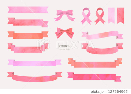 赤いリボンのイラスト素材セット(水彩風ベクター)