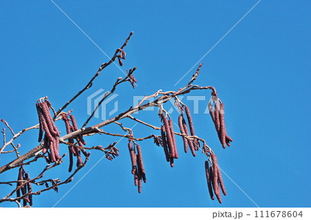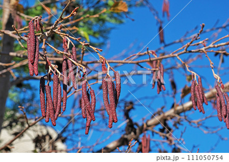 自然 植物 ヤマハンノキ、枝先に雌花が咲いています。葉芽はまだ眠っているようです