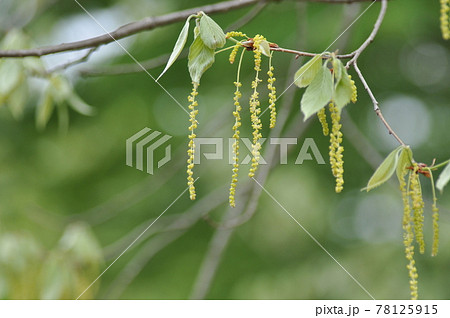 自然 植物 サワシバ、雌雄同株で異花。こちらは雄花、初夏に小さな花が集まった細長い花序を垂らします