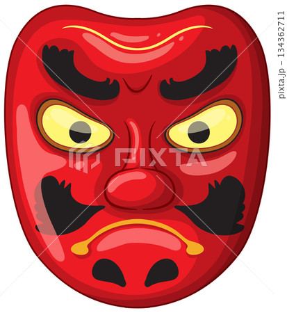 Red Japanese Tengu Mask Vector Illustration with Bold Expression