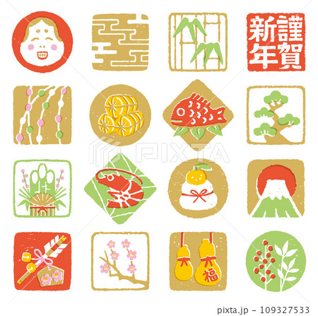 アイコン。正月の素材。伝統文化。日本の縁起物。