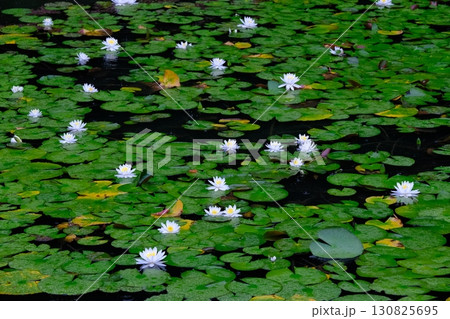 梅雨で睡蓮が咲く八条池