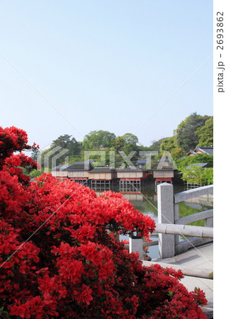 京都 長岡天満宮 銀水亭と満開の霧島つつじ