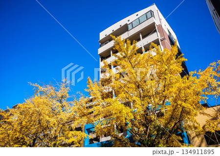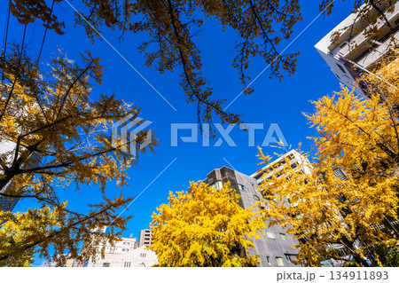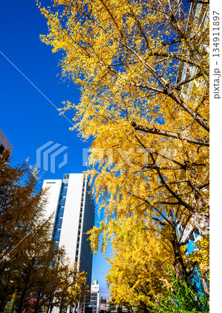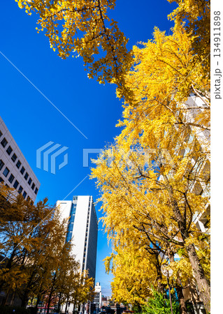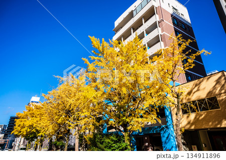 長崎市民会館横のイチョウ並木の紅葉 【長崎市】