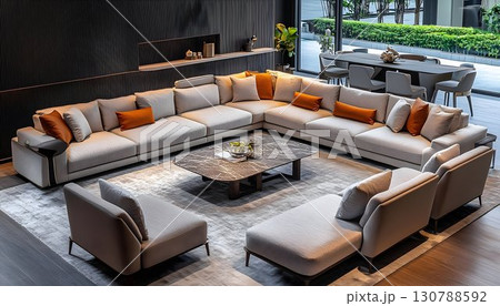 Beautifully designed modern living room with natural light and soft textures in a spacious home