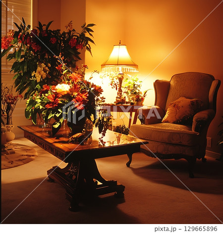 Cozy Living Room Interior with Warm Light and Modern Decor