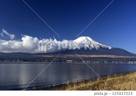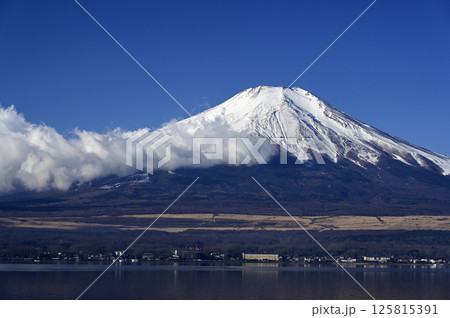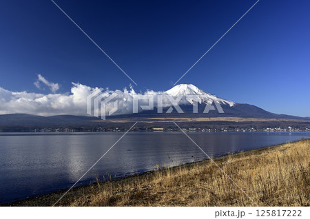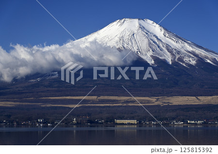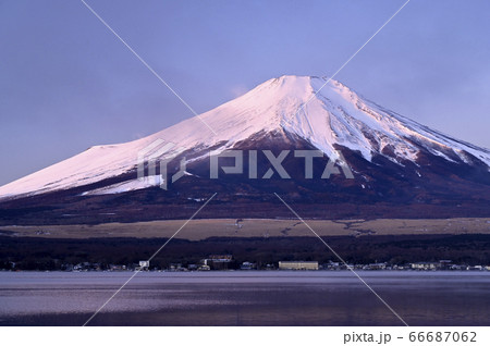 富士山、山中湖、早朝、富士五湖、夜明け前、甲信越、山梨県、山中湖村、雪、雪の富士山、紅富士、長池親水