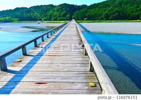 大井川に架かる風情ある木造橋・蓬莱橋