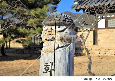 安東・河回マウルの村内に立つチャンスン(木偶) 【韓国・安東】