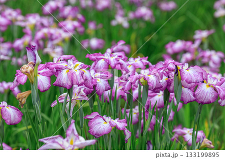 北海道苫小牧市、錦大沼ハナショウブ園で咲き誇るハナショウブ・長生殿(江戸系)【7月】