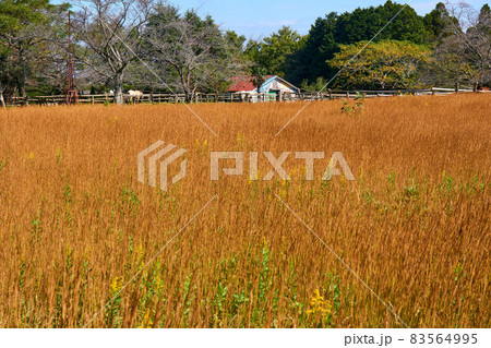 草紅葉と厩舎 秋元牧場