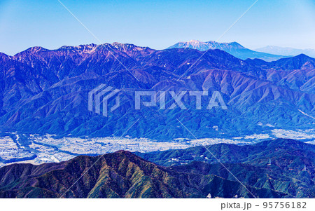 秋 南アルプス仙丈ヶ岳山頂からの風景 中央アルプスと御嶽山 白山遠景