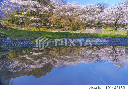 水面に映る幻想的な逆さ桜 春の長等公園(滋賀県大津市)