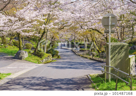 満開の桜で艶やかな薄紅色に染まる春の長等公園(滋賀県大津市)
