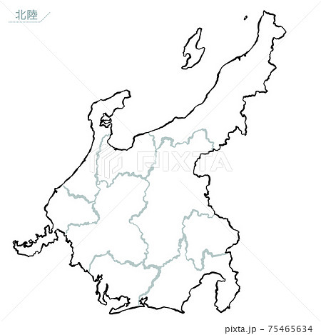 北陸地方と中部地方周辺のシンプルな白地図、県の境界入り