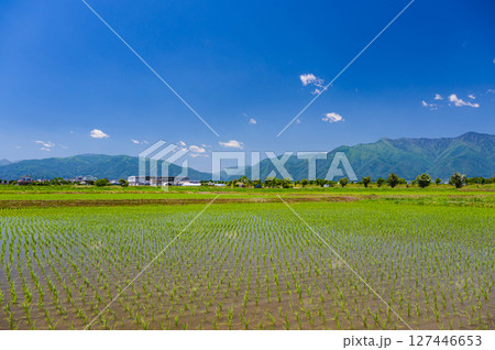 田植え頃の自然風景 八ヶ岳方面