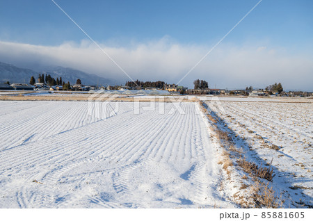 雪の田園風景 松本市から安曇野方面