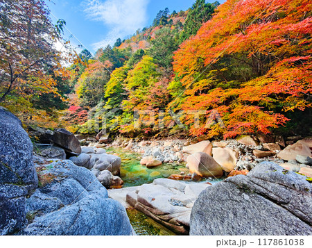 秋の長野県上松町 紅葉の寝覚の床