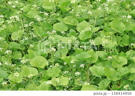 乗鞍高原の白い野菊の群生 緑背景長野県