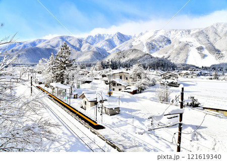 JR大糸線 飯森駅付近より白馬五竜スキー場方面を望む(長野県白馬村)【2024.12】