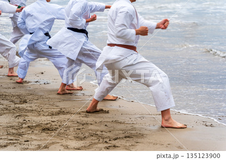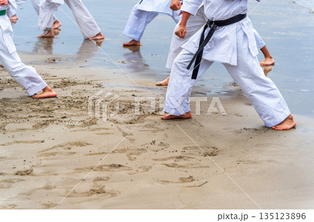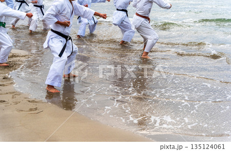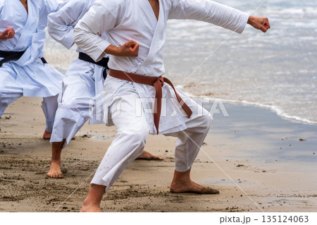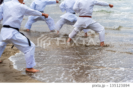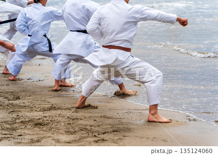真冬の海岸で空手の寒稽古