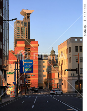 黄昏時の門司港レトロ地区の街並み