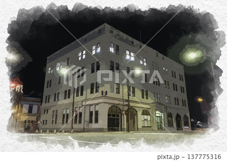 水彩画風 門司港レトロ 門司郵船ビル 福岡県北九州市
