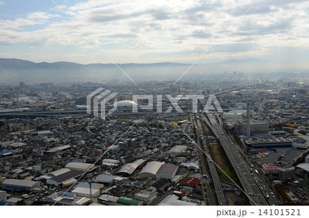 大阪府門真市上空からの空撮写真 門真ジャンクション、ラクタブドーム等