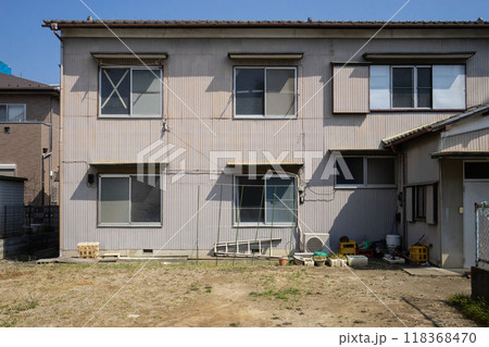 二階建てアパート、老朽化した下宿屋、窓の割れたアパート
