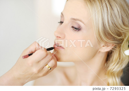 Young beautiful bride applying wedding make-up