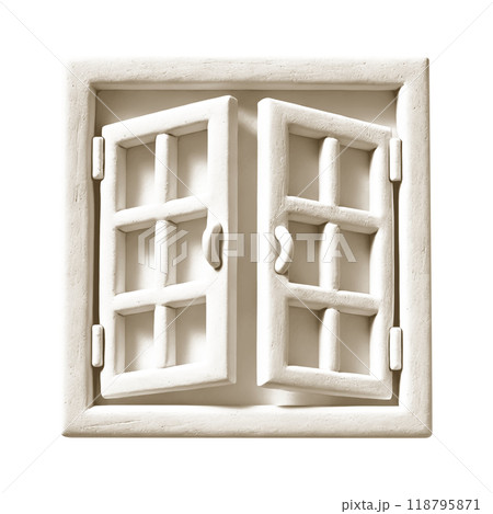 クレイアートで作られた開いた窓のミニマルなピクトグラムアイコン