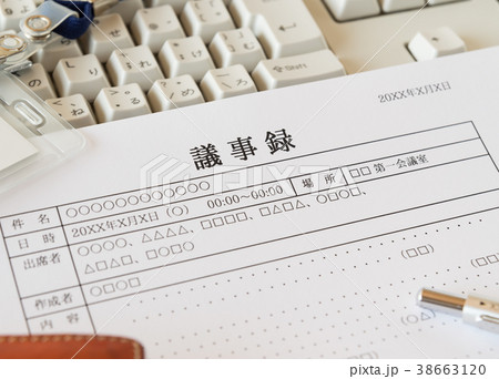 ミーティングの議事録 記録 書類 ビジネスシーン アジェンダ ミーティング 情報共有 会議 証拠