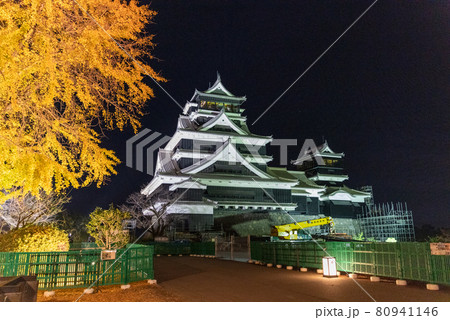 秋の夜紅葉の熊本城とライトアップとお城祭り