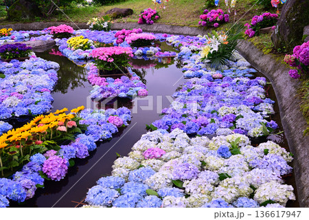 カラフルなあじさい池