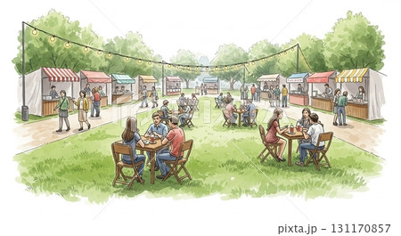 芝生広場で開かれる国際色豊かなフードフェス