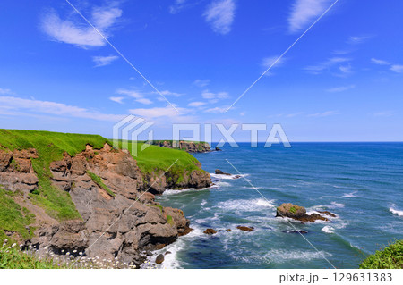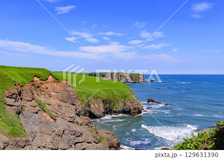 琵琶瀬から望む嶮暮帰島と太平洋の夏景色(北海道浜中町)