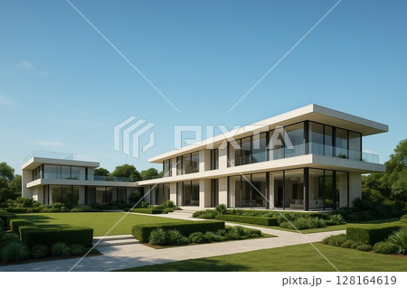 Modern Minimalist Architecture with Glass Walls Showcasing Indoor-Outdoor Living Spaces
