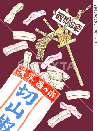 切山椒と熊手守り_背景2色入り_浅草_酉の市