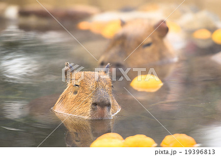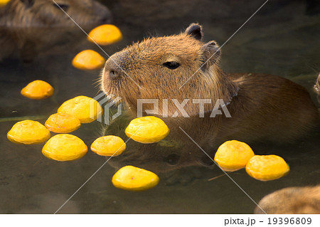 柚子湯に浸かるカピバラ