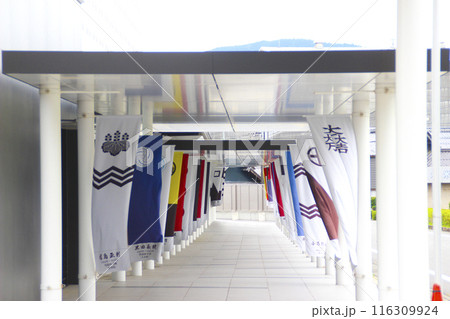 関ヶ原の戦い 徳川家康最後陣跡の脇に並ぶ幟(軍旗)の列