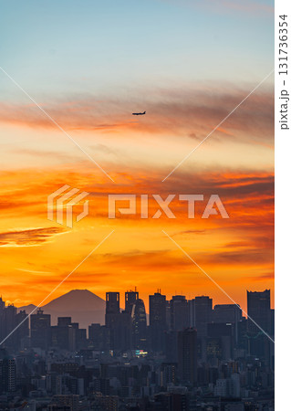 関東・吾妻山公園・夕暮れの美しい色彩の空に浮かび上がる富士山と箱根のシルエット・神奈川県二宮町()