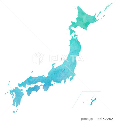 水彩風の日本地図のシルエットイラスト