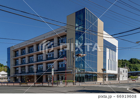 青空快晴を背にした高萩市役所庁舎【電線なし】