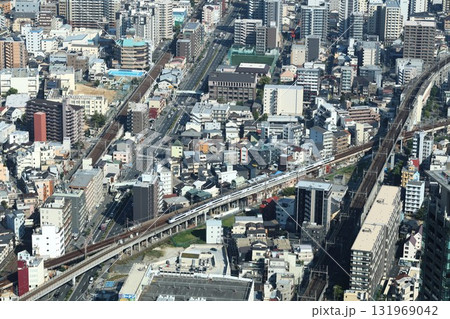 東寺をバックに、京都市内を走る新幹線と関空特急はるか